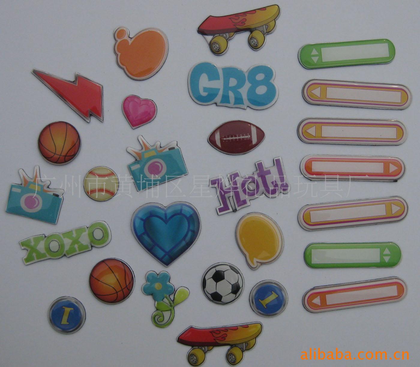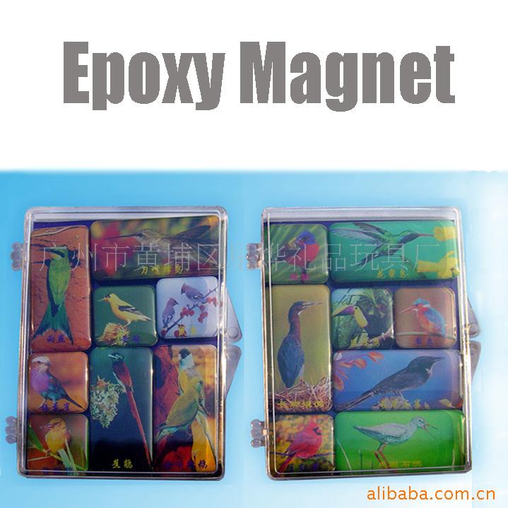 12)滴胶冰箱贴:采用下面软胶磁铁+上面铜版纸彩色印刷+滴胶腹膜制作而成