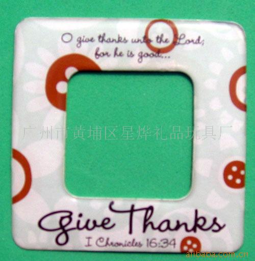 5)磁性相框:采用软胶磁铁裱铜版纸彩色印刷腹膜,中间冲切相框制作而成。或是按照客人要求制作双层相框,PVC相框,纸板相框等各种材质的相框。
