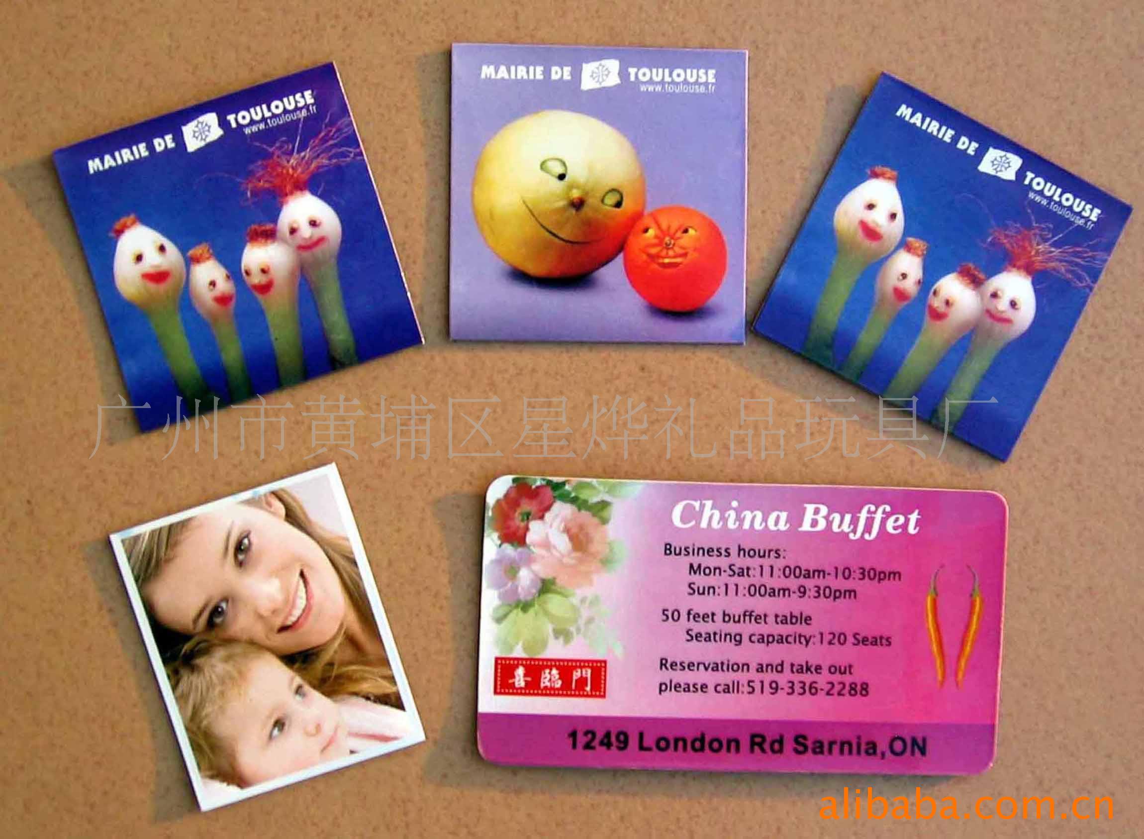 橡胶磁铁+彩色印刷纸覆光膜或哑膜,可按照客户的要求制作生产出不同形状,大小及厚度,价格优惠,是各企业促销活动之理想选择。
