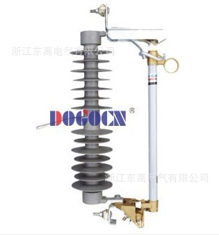 跌落式熔断器由绝缘子、接触导电系统和熔管三部分组成。正常工作时,熔丝使熔管上的活动关节锁紧,熔管在上触头的压力下处于合闸状态。故障时,熔丝熔断,在熔管内产生电弧,熔管内衬的消弧管在电弧作用下分解出大量气体,在电流过零时产生强烈的去游离作用而熄灭电弧。由于熔丝熔断,因而活动关节释放使熔管下垂,在上、下触头的弹力和熔管自重的作用下迅速跌落,形成明显的断开间隙。