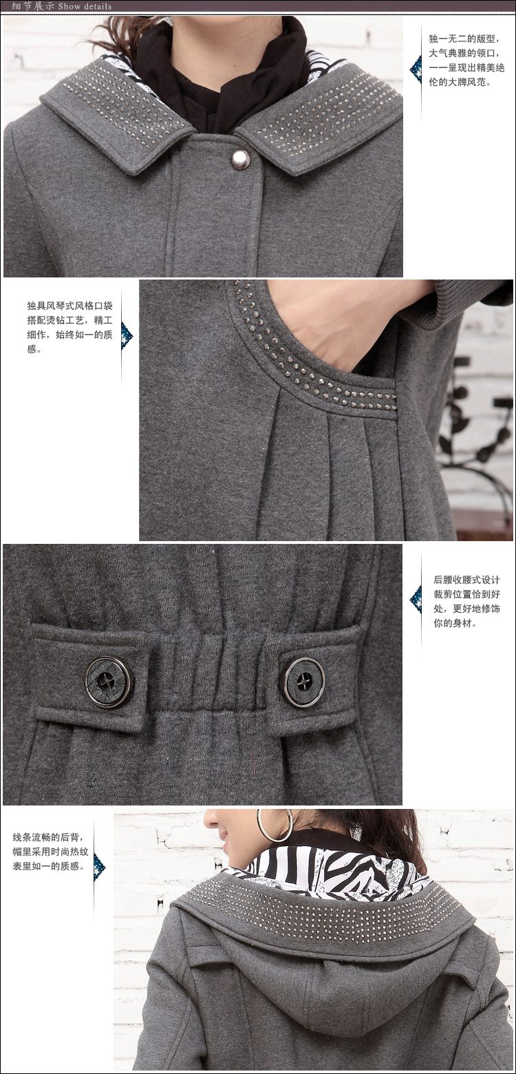 心恋尼 2013女装秋冬外套 大码女装长款连帽外套 外贸原单加大码