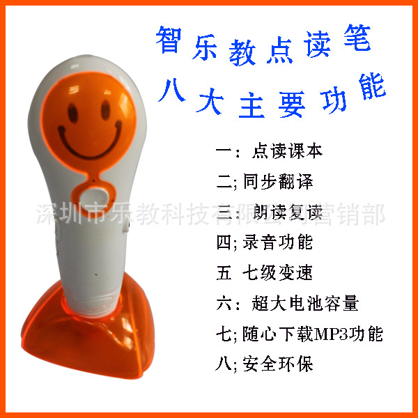 [智乐教点读笔]在配套图书点不同位置可发出不同的声音,点中文说中文,点英语说英语,点故事讲故事,点儿歌唱儿歌,笔头采用优质第六代加密型OID技术方案60000组码,感应灵敏、准确,哪里不懂点哪里。