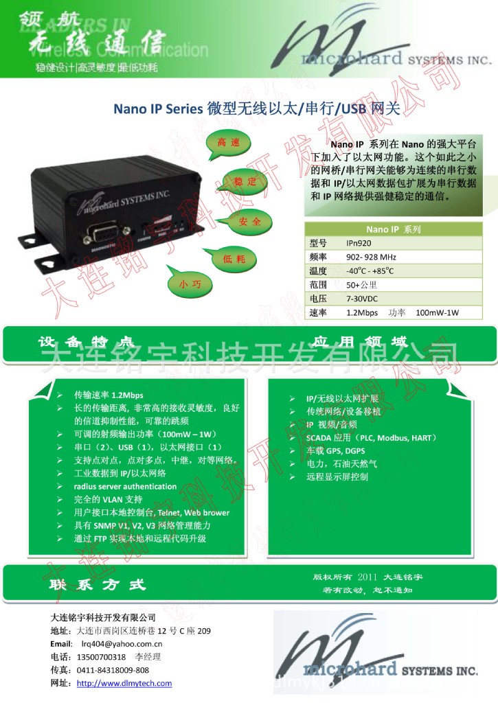 Nano IP 系列在Nano的强大平台下加入了以太网功能。这个如此之小的网桥/串行网关能够为连续的串行数据和IP/以太网数据包扩展为串行数据和IP网络提供强健稳定的通信。