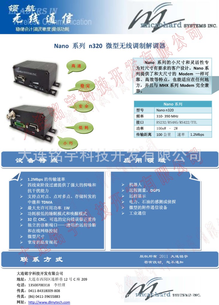 Nano 系列的小尺寸和灵活性专为对尺寸有要求的客户设计。Nano系列提供了和大尺寸的Modem一样可靠、高效等特点,也能适应在任何地方,并且与MHX系列Modem完全兼容。