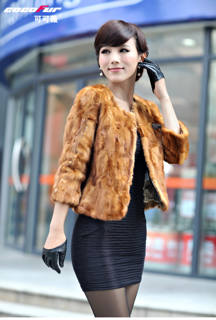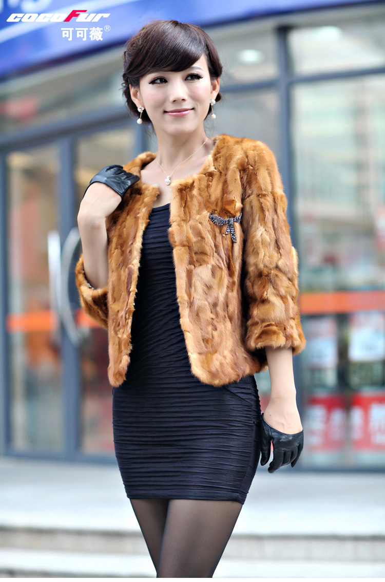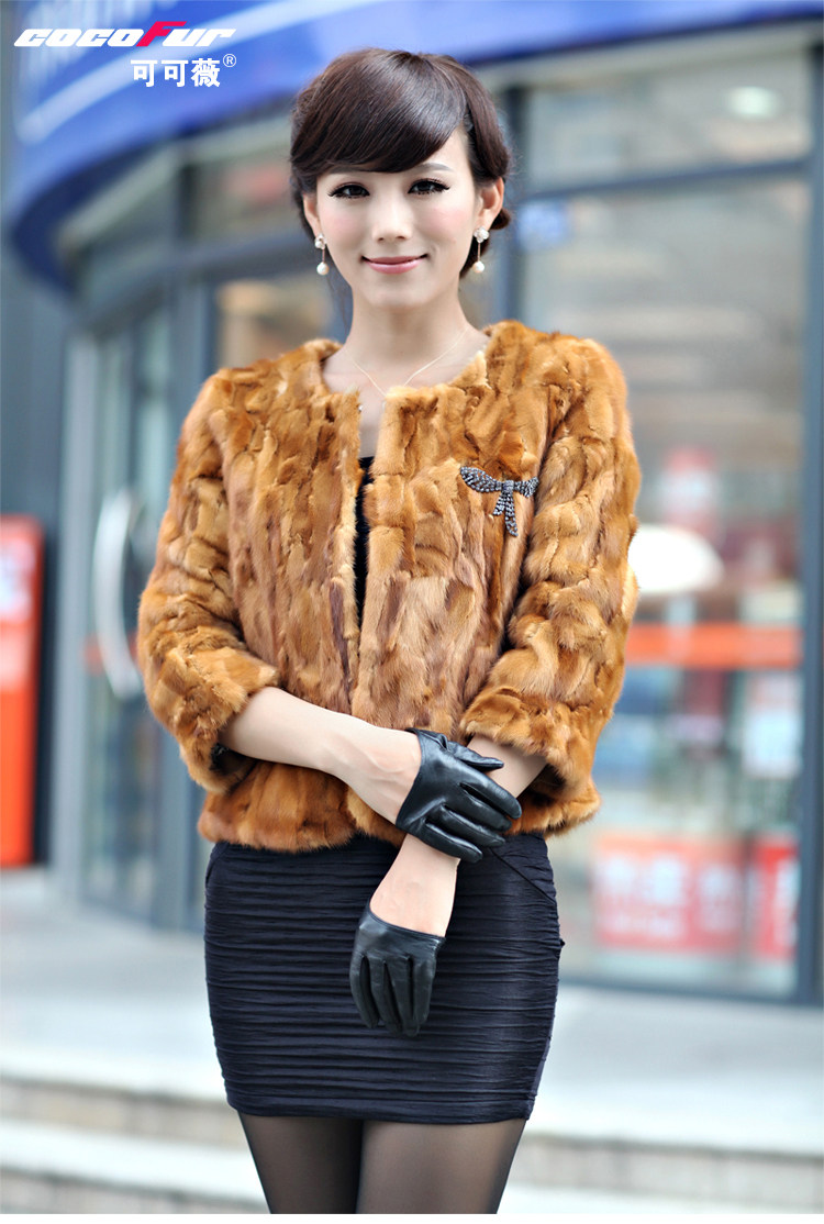 可可薇 水貂皮草外套新款2013 海宁貂皮大衣女短款2002