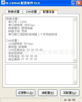CAN转换器出厂默认设置