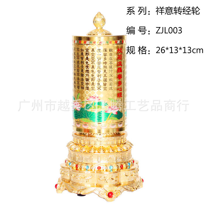 【品名】:祥意转经轮、祥意转经轮(手摇)、心经转经轮、大悲咒转经轮、手摇转经轮、新款心经转经轮、大祥意转经轮 【规格】:30*13*13cm、30*13*13cm、26*13*13cm、26*13*13cm、19*8*8cm、26*13*13cm、78*50*50cm 【重量】:2.3kg、2kg、2kg、2kg、0.38kg、0.96kg、30.4kg 【编号】:ZJL001、ZJL002、ZJL003、ZJL004、ZJL005、ZJL006、ZJL007 【材料】:黄铜、锌合金、塑料 【颜色】:铜镀金 【经文】:内含三、两、一卷经书,45、19首经文歌曲 |