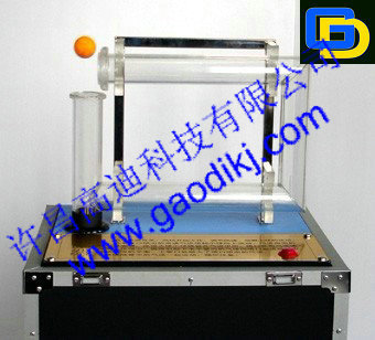 展示原理:从垂直管口喷出的高速气流,顶起小球向上运动。气流周围的空气流速慢压强大,使小球保留在气流中心。喷口处的气流速度快,压强小,因而引起下水平管内的气体向喷口处流动。为维持平衡,空气从上管口吸入,也吸入了喷口喷出的气流,由此形成环流。