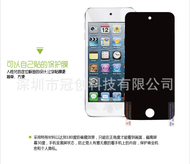 触控式屏幕保护、ATM机屏幕、电脑屏幕保护、手机屏幕保护、电视屏幕保护、相机屏幕保护、游戏机屏幕保护、数码产品屏幕保护膜、导航器屏幕保护等平面屏幕的保护。防止他人偷看商业机密及个人隐私。