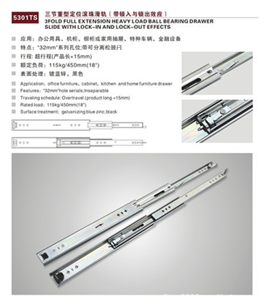 特点:重型滑轨,全抽出,不可分离和带可分离胶脱闩