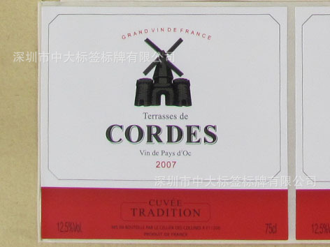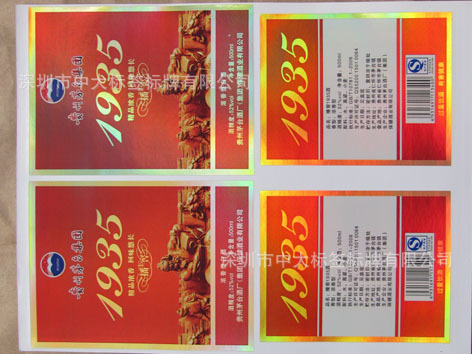 3:红酒不干胶标签,采用原装进口花纹纸不干胶材料印刷。