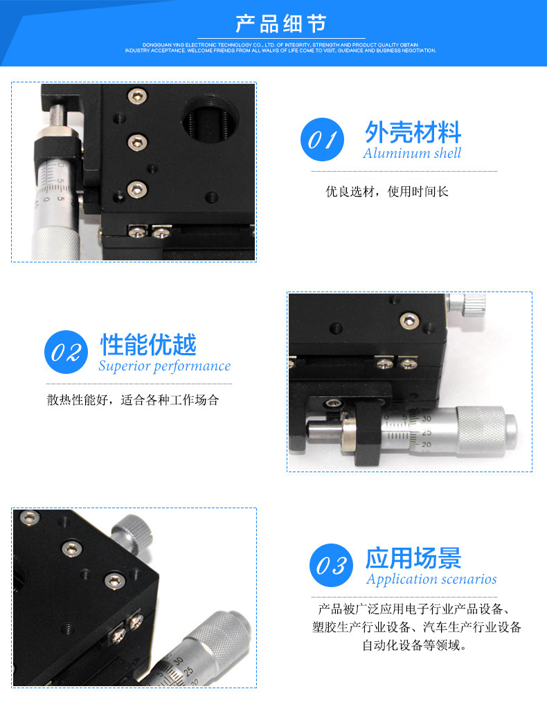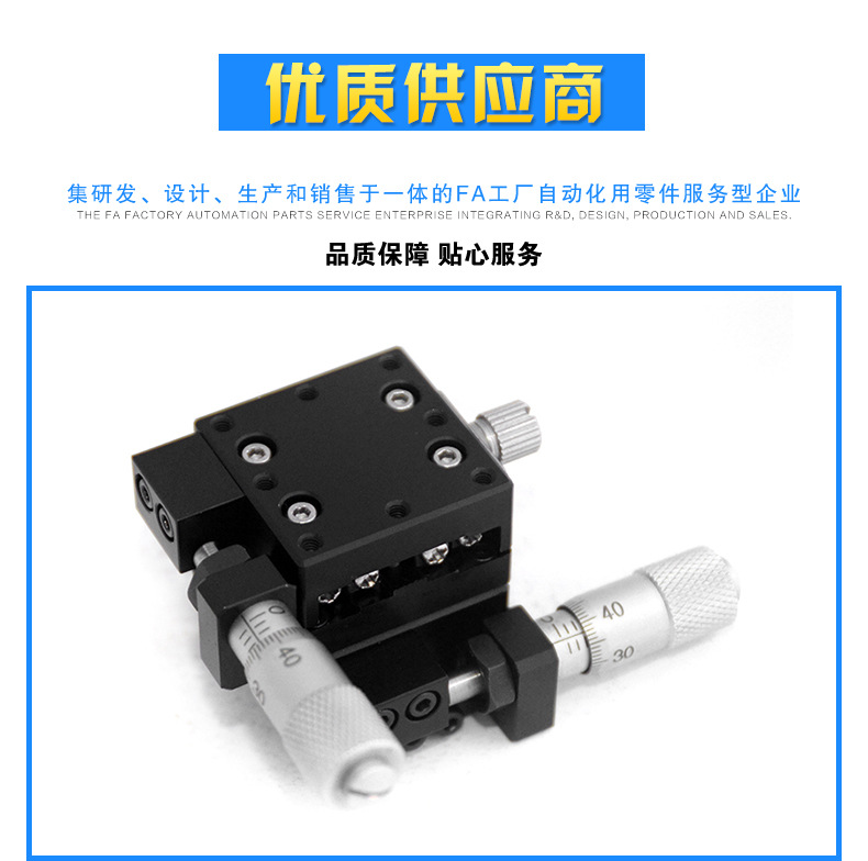 公司坐落于中国五金模具之都---东莞长安鎮,这里交通便利、配套齐全、人才专业。公司经营FA工厂自动化零件包含以下系列:标准滑台、中精度滑台、高精度滑台 ,直线导轨 滚珠丝杆、丝杆支座组件, 梯形丝杆、滑动丝杆 ,轴承固定座、轴承 ,单轴机器人、手动组件 ,简易调整组件。