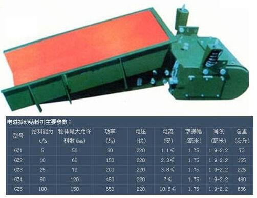 GZ型系列电磁振动给料机:广泛应用于矿山、冶金、煤炭、建材、化工、电力、粮食等行业,用于把块 状、颗粒状及粉状物料从贮料仓或其它贮料设备中均匀连续或定量的给到受料设备中。
