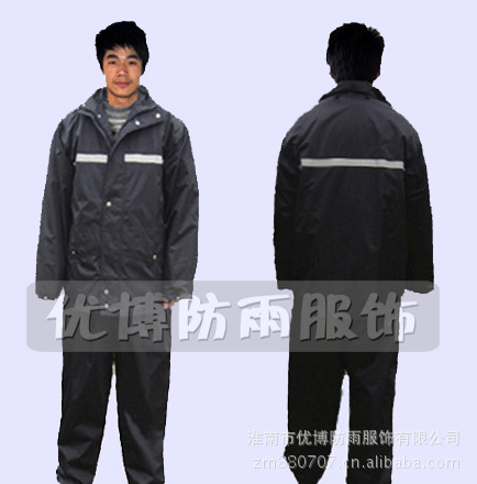 本品为春亚纺面料,加100%PVC防水涂层,高强度反光条设计,双层防沾身透气网格设计,暗藏式帽子,上下分体套装,防盗防水口袋,休闲款式,安全实用!