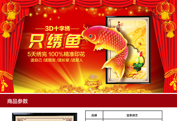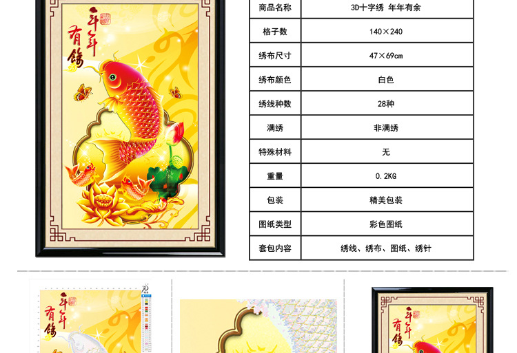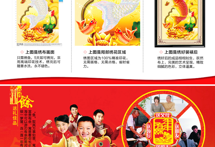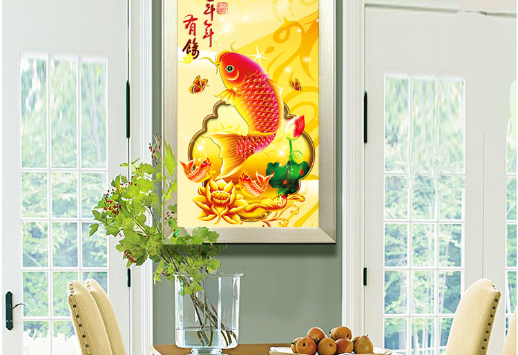 乐彩新款十字绣年年有余鱼3d印花十字绣大幅客厅餐厅书房系列