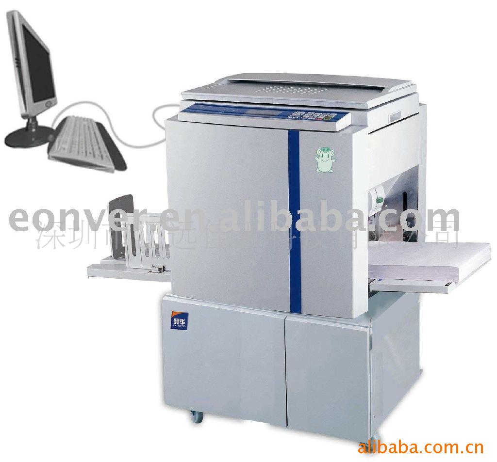操作界面:大屏幕中文液晶显示,印刷模式:盖板式数码扫描,自动印刷,原稿模式:单页/书刊,分辨率:300x400dpi,制版模式:文字/图像/图文,原稿尺寸:310x430mm(max),印刷纸张尺寸:297x420mm(max),印刷有效幅面:254x355mm(max),首张制版时间:40秒左右(B4),印刷速度:45-120张/分钟(45,60,75,90,105,120张/分钟),缩放比例:4级缩小:93,87,82,71% 3级放大:115,122,141%,用纸重量:28-210g/㎡,供纸容量:1000张(70g/㎡),接纸容量:1000张(70g/㎡),版纸容量:180版(B4),废版纸盒容量:40张,印刷天地位置移动:±15mm,电源:220V 50/60Hz,体积:695x673x607mm(静止状态)1285x637x607mmx(工作状态),重量:80kg