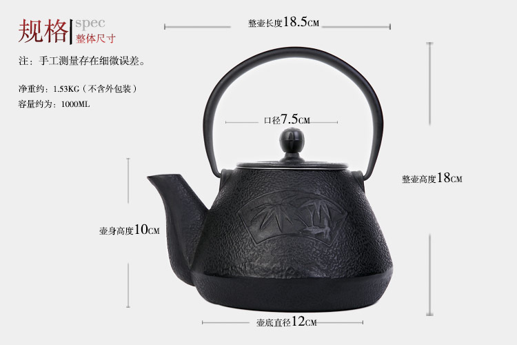 品名 | 竹梅铁壶 | 货号 | 竹梅铁壶 | | 产地 | 广州 | 材质 | 铸铁 | 工艺 | 铸铁 | 耐热 | --- | 规格 | 参见详图 | 颜色 | 黑色 | 组件 | --- | 制作工艺 | 铸铁 | 备注 | 该产品已将优惠加入、谢绝议价! |