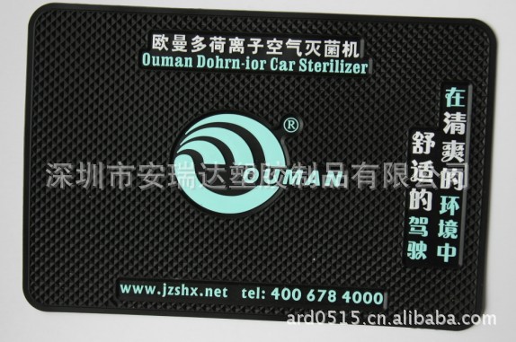 本公司专业生产广告促销、广告宣传礼品,主营产品有汽车防滑垫,U盘外壳,手机座,行李牌,钥匙扣,酒吧垫,杯垫,相框,商标,吊坠公仔等PVC软胶礼品,这些产品上都可以滴胶公司LOGO,实用性强,又可做装饰品,是商家,企业,单位首选的广告礼品。 什么是汽车防滑垫?汽车防滑垫有什么作用呢?顾名思义,汽车防滑垫就是一块放在汽车仪表台上的防滑垫子,车主可以把自己的手机,钥匙,眼镜等小物品放置在上面,在汽车驾驶,转弯,刹车等过程中不会使这些小物品掉落,还可保护汽车仪表台不被长时间放置的这些小物品而刮伤或磨损。那么,汽车防滑垫是有什么材料做成的呢?都有哪些特点呢?目前市场上比较畅销的是PVC软胶材质的防滑垫,PU材质的防滑垫,以及硅胶材质的防滑垫,PVC材质的汽车防滑垫主要特点:将防滑垫置于汽车仪表台上,无粘性,不反光,不伤仪表台,具超强的附著力,手机,笔,眼镜等任何物品放在上面,即使是急刹车或震动也不会滑落,PVC软胶材质的防滑垫既柔软又有弹性,防滑功效好,可直接用清水清洗防滑垫上的灰尘,甩干后可以继续使用。造型可以根据客户的要求量身订制,图案雅观细腻,字体清晰唯美,属绿色环保产品,产品已经经由过程SGS检测,是宣传公司及产品的最佳促销礼物,普遍应用于汽车用品, 促销礼物,广告宣传等行业。PU材质和硅胶材质的汽车防滑垫特点是:颜色丰富,款式多样,粘性比较好,也可印刷LOGO,但是印刷的颜色有限,一般1-2个色,所以不适合做广告宣传用。 汽车防滑垫也叫手机防滑垫,常见的外形有长方形,正方形,圆形,立体盆形和各种卡通外形,不仅可以放置在汽车仪表台上,也可放置桌面上或者其他平坦的器皿上,上面可以放置一些常用的小物品,PVC软胶汽车防滑垫因其外形美观,图案精美,也可做装饰用品,产品上也可以滴胶公司LOGO及广告宣传语,还可以做立体LOGO,价钱适中,不侵蚀仪表台,不熔化,具有很好的广告效果,比如4S店,汽车美容店,汽车维修店,保险公司等等,都可以用一款简单的汽车防滑垫来达到广告宣传的作用,点胶的LOGO及广告语颜色突出,字体清晰,不掉色,不裉色,还可以做立体效果,整个产品看起来既高档美观,又实用性强,是各企业的首选广告礼品。 深圳安瑞达塑胶制品有限公司是一家专业生产汽车防滑垫、手机防滑垫、硅胶垫、U盘外壳、手机座、行李牌、PVC软胶钥匙扣、酒吧垫、PVC软胶杯垫、PVC滴胶相框、PVC软胶商标、PVC软胶公仔吊坠等软胶广告礼品。本公司采用进口环保材料、最新型生产线、全自动12色自动点胶机。公司生产的环保汽车防滑垫,质量好成本低,可大批量供应生产。