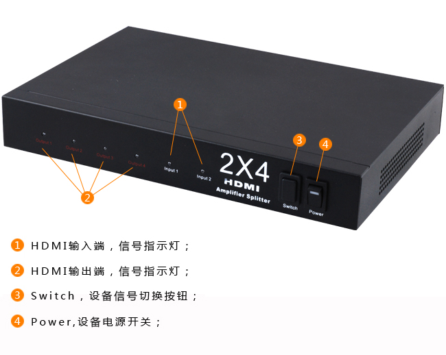 HDMI矩阵 2进4出 二进四出 2X4 HDMI切换分配器 支持1080P