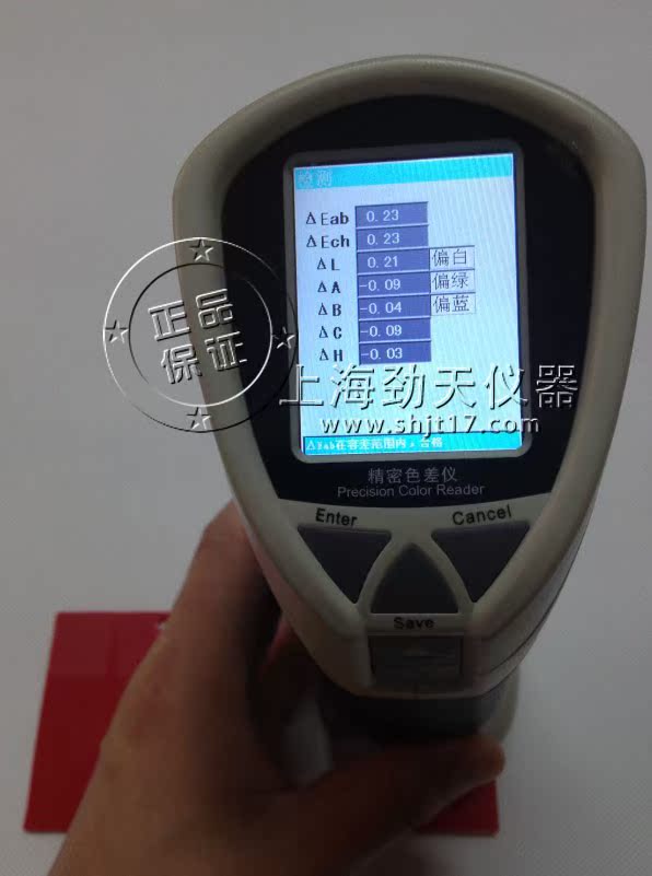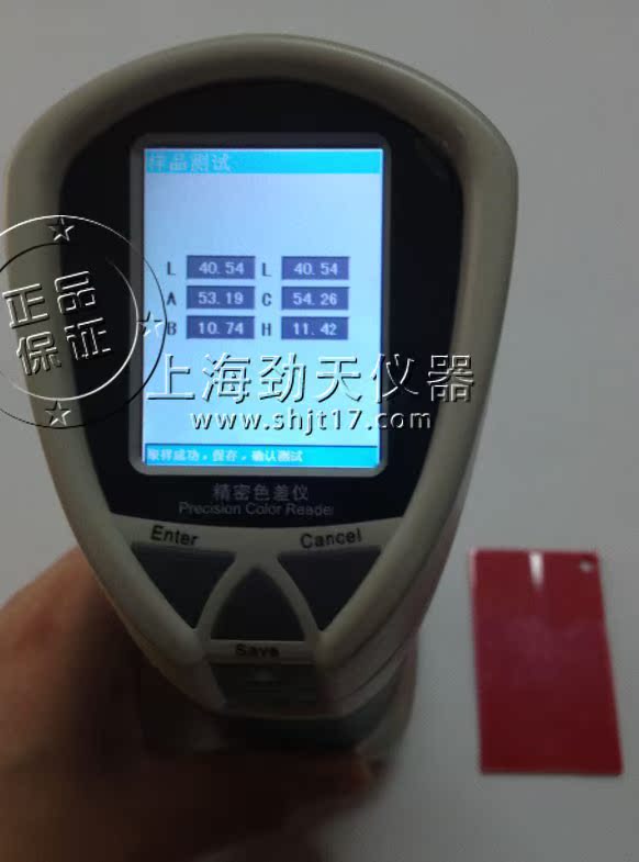 通过比较被检品与标准样板之间的颜色差异,即时输出CIE-Lab标准样数据和比色后的△E、△L、△a、△b四组色差数据。