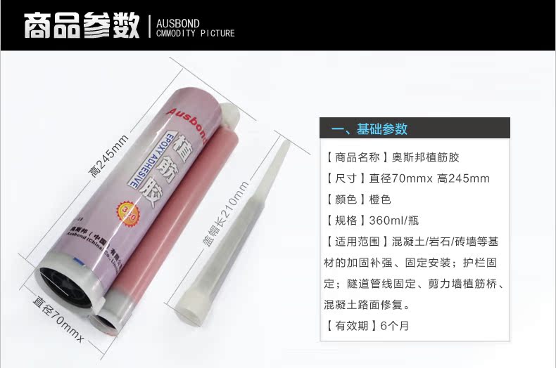 奥斯邦环氧植筋胶水 强力建筑加固注射式植筋胶泥 锚固剂胶360ML