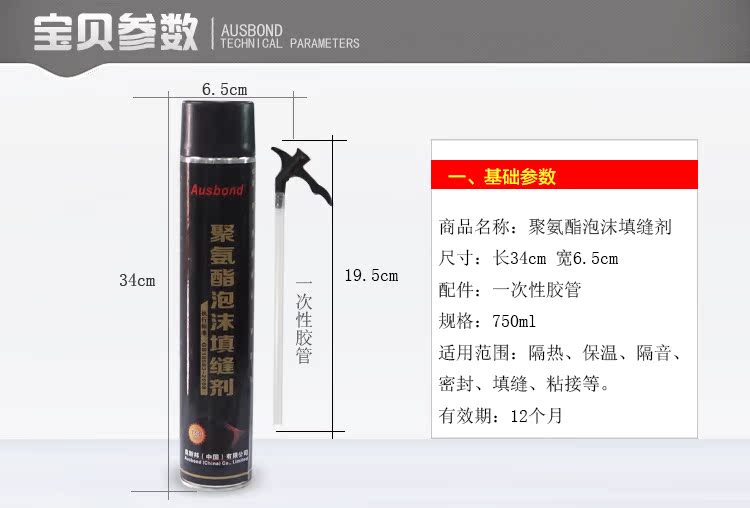 奥斯邦聚氨酯泡沫填缝剂 发泡剂发泡胶 泡沫胶 填充剂膨胀胶750ML