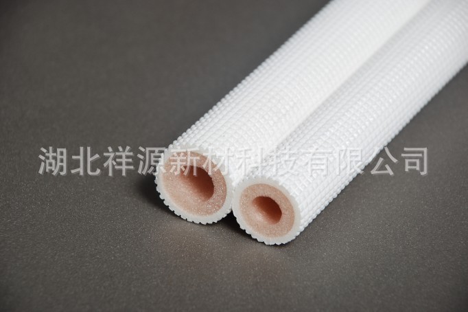 IXPE复合空调连接保温管 空调冷媒连接配管的保温管材料为三层结构,保温管内管由聚乙烯水架桥发泡(EPE),中间层由电子架桥发泡(IXPE),外层由聚乙烯抗老化、紫外线复合膜组成。内管壁无接口裂缝,管材无假焊、空包现象,所以管材吸水性小,保温性能极佳。对铜管、铝管等无腐蚀作用。广泛应用于家用中央空调的冷媒管、水管保温;家用分体空调的连接管等。 八大产品优势: (1)环保性:符合RoHS标准,不含VOC(挥发性有机化合物),绿色环保。 (2)隔热性:独立气泡结构,无空气对流,热传导系数小(25℃)(0.043W/m.k),不受环境因素影响,高效节能。 (3)使用温度:-40℃~120℃,特性不变化,非常适合空调保冷保温。 (4)防水性:独立气孔结构,吸水率低,完全不透气,不吸水,管材一次成型,管壁无接口裂缝。 (5)耐候性:通过电子辐照改性后,具良好的耐候性,耐老化。 (6)耐腐蚀性:特殊之PE高分子聚合体,可耐油,耐酸,耐腐蚀性能优越,不滋生细菌,产生管道内二次污染。 (7)隔离性:材质具100%的密闭气室,隔音性佳,可防止水流动时产生的噪音(水锤音)。 (8)加工性:质轻具可绕性,可减少接缝处,缩短工时,降低工作成本等。 常用规格--单管 产品型号 | 名称 | 内径 (mm) | 内径公差 (mm) | 壁厚 (mm) | 壁厚公差 (mm) | 类别 | 颜色/长度 | 适用铜管 | GD01-0002 | 2分 | Φ8.0 | ±1.0 | 8.0 | ±1.0 | 普通/耐高温120℃/阻燃 | 根据客户要求 | Φ6.35 | GD01-0003 | 3分 | Φ12.0 | ±1.0 | 8.0 | ±1.0 | 普通/耐高温120℃/阻燃 | 根据客户要求 | Φ9.52 | GD01-0004 | 4分 | Φ14.5 | ±1.5 | 8.0 | ±1.0 | 普通/耐高温120℃/阻燃 | 根据客户要求 | Φ12.70 | GD01-0005 | 5分 | Φ18.0 | ±1.5 | 8.0 | ±1.0 | 普通/耐高温120℃/阻燃 | 根据客户要求 | Φ15.88 | GD01-0006 | 6分 | Φ22.0 | ±1.5 | 8.0 | ±1.0 | 普通/耐高温120℃/阻燃 | 根据客户要求 | Φ19.05 |