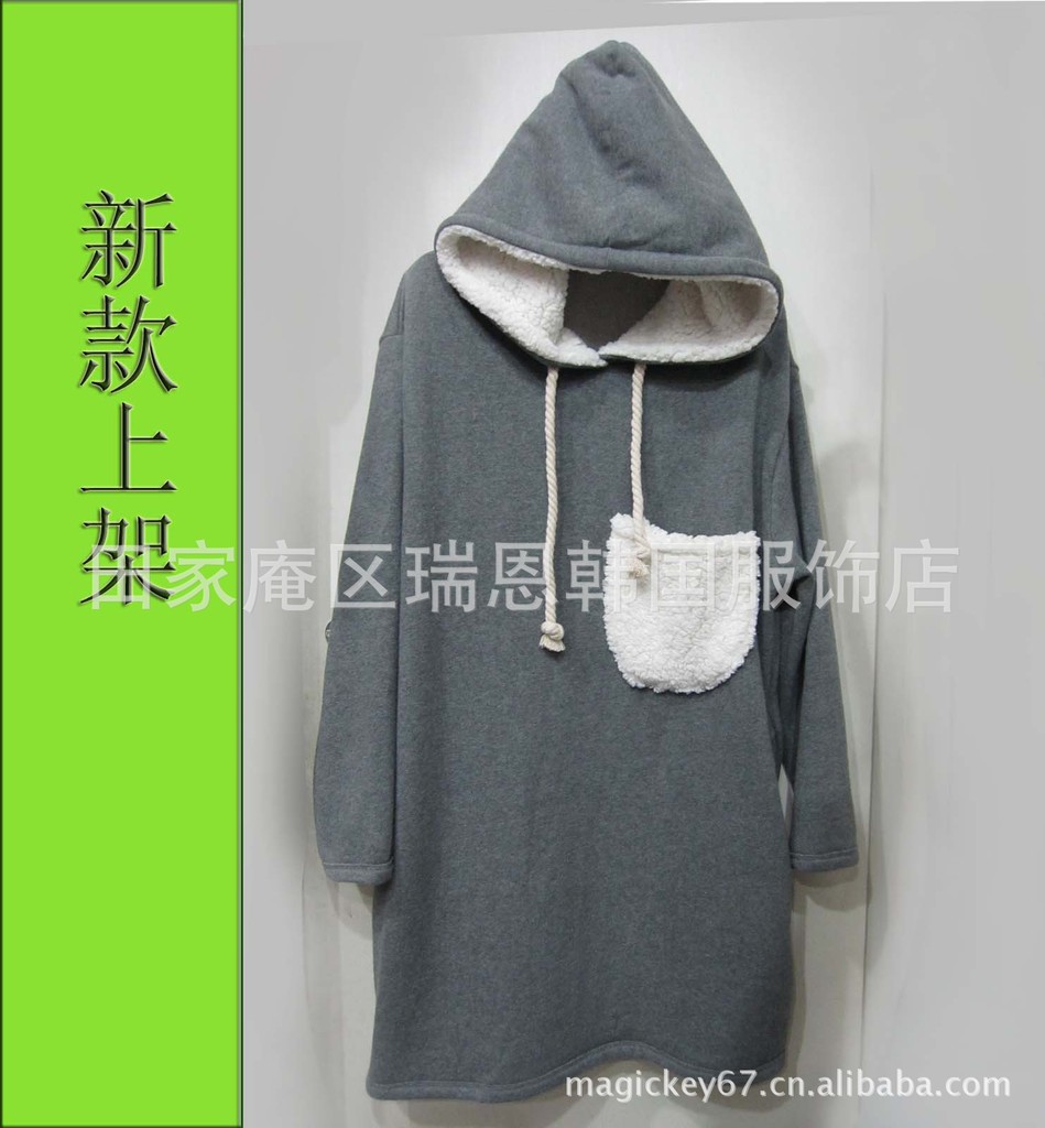 热销2011秋冬韩版宽松抓绒加厚大码卫衣抽绳连帽独设计女绒衫