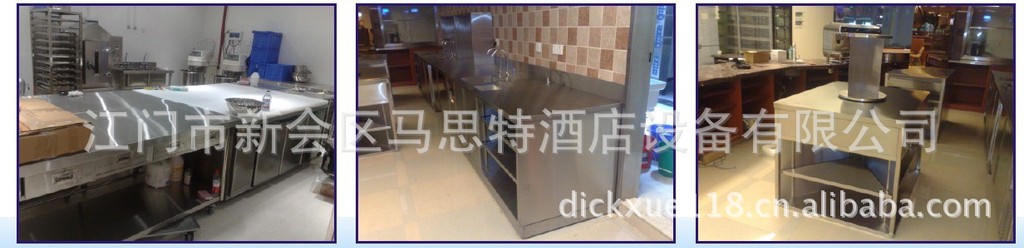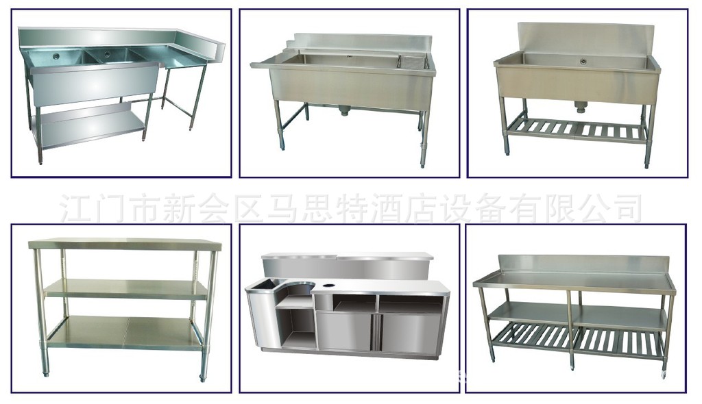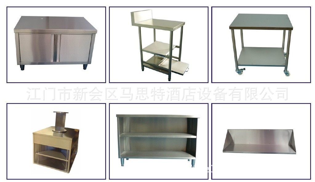 2、例如:不锈钢工作台,不锈钢储物架,不锈钢星盆台,不锈钢挂柜/储物柜,不锈钢炒炉,不锈钢煲汤炉,不锈钢蒸柜,不锈钢餐车,不锈钢平板车等等。
