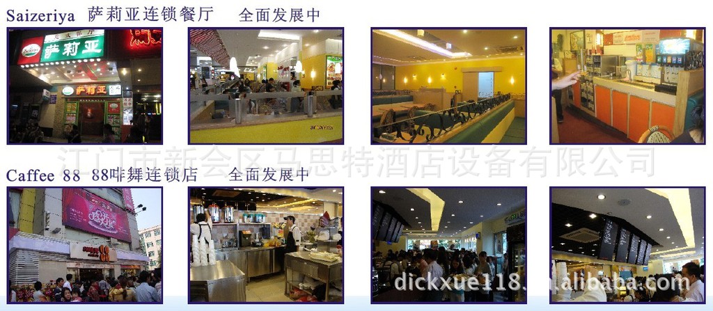 配套方面,我们有幸代理了多个国际知名品牌产品,如韩国--多宾“Dophin”洗碗机,日本--星崎“Hoshizaki”制冰机,冷柜,美国--特博尔“Turbo”冷柜,美国--勘宝牌“Cambro”塑料产品等等!