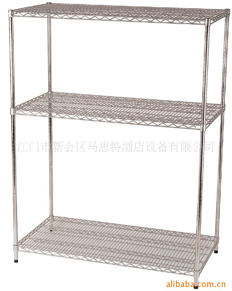 在镀铬的网架表面上加上高效能无毒的透明保护层,保存银色光亮,而且能大大增加防锈能力,并能防潮,酸,碱腐蚀。而高/低温-40℃至180℃。结构独特,碳钢网面,坚固耐用。能够减少尘埃积累,清洁简易且具有抗菌性。开放式设计,令储存货物一目了然,方便清点。可根据不同的环境需要而改变组合形式,使用不同配件即可自由组合无数网架系列,灵活多变。每层网片可随意调整高度,以每英寸增减。能够通过弹性很快将承重外力均匀分布网片四个角,所以承重性很好,每片网片可负重280KG。美观耐用,而且表面经处理后光亮大幅提高,历久常新。