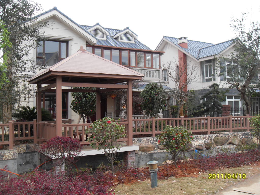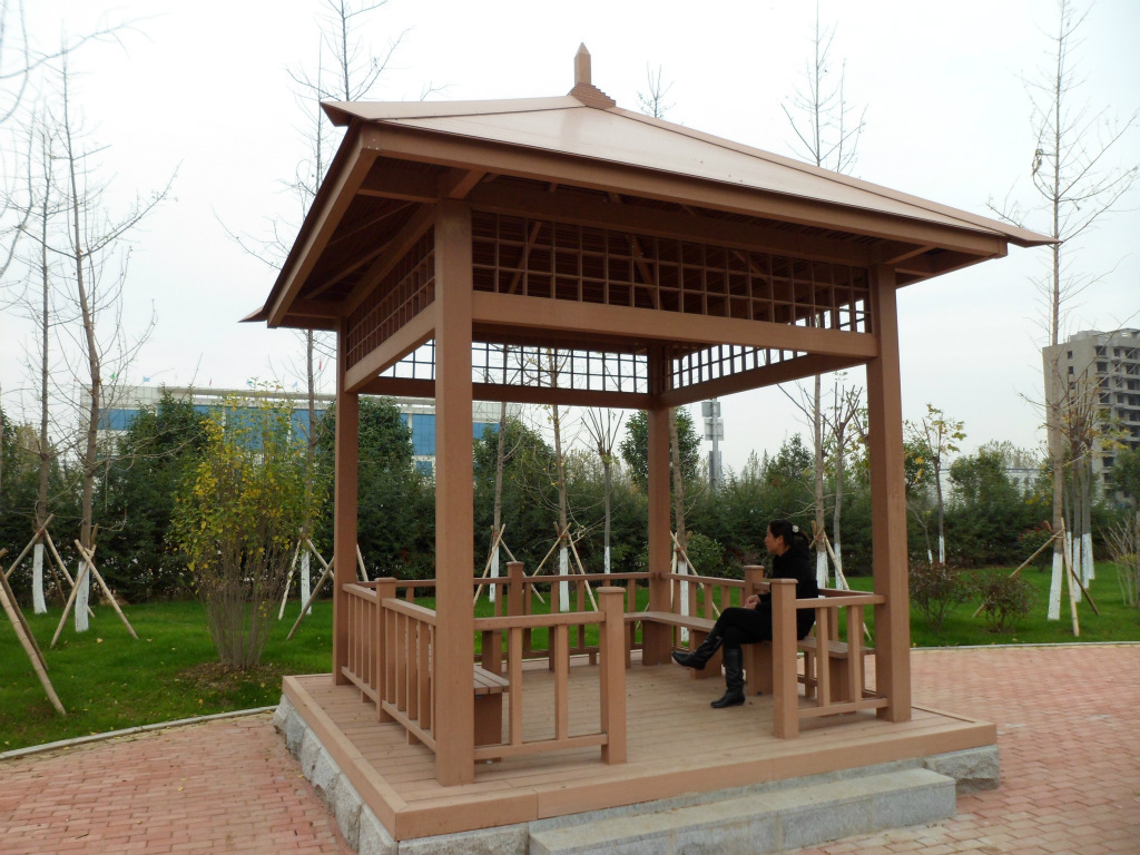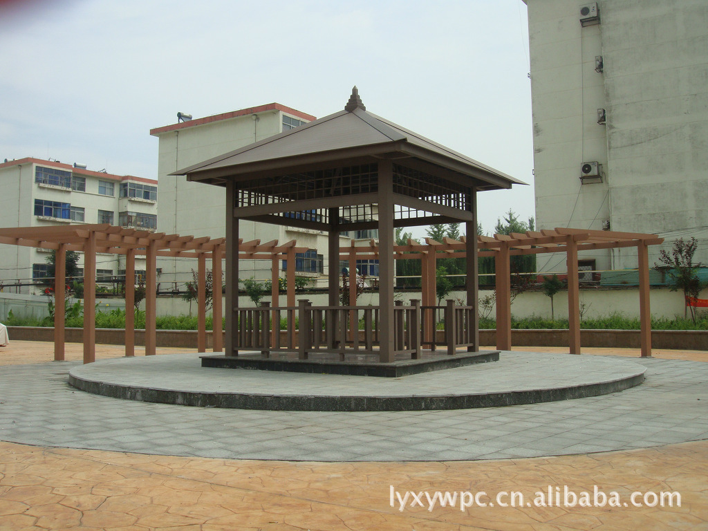 以上图片是做过的凉亭案列,有意者可以参考一下上边的图片,凉亭的大小,样式 ,颜色都可以根据您自己的要求来设计,塑木凉亭是时下新型环保产品,环保美观,咨询请致电:赵经理:15194055345.临沂祥云塑木制品有限公司是集产品开发、设计、销售于一体的塑木产品专业生产商。公司坐落于具有“红色之都、绿色水城”美誉的城市--临沂市河东区工业园,占地25253平方米,具有标准的生产车间和20多条专业的生产线。 本公司专业生产环保塑木产品。产品主要有:户外塑木地板、栅栏、花盆、户外桌椅、宠物屋、托盘等多种系列的户外及园艺用品,并开发生产了桑拿板等室内用品。产品采用聚烯烃塑料与木质纤维(秸杆、木粉、稻糠等)为原料,绿色环保、颜色多样,耐腐蚀,安装使用简单、快捷,并兼有木材的高强度、高弹性和塑料的高韧性、耐久性等诸多优点,是替代木材和部分塑料制品理想的新型环保产品,目前产品通过了SGS、CE、ISO14001等认证。 公司成立以来,始终坚持技术创新,以人为本,不断引进新技术、新工艺,努力开发新产品,并不断加强职工的职业道德和技术培训,全面提高员工的整体素质,树立良好的企业形象。 本着诚信友善,互惠多赢的企业理念,临沂祥云塑木制品有限公司热诚欢迎国内外各界友人参观考察、洽谈业务,共创美好未来。