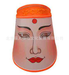 面具可以遮挡悲哀,遮挡疲惫;面具可以遮挡羞涩,遮挡不安。您可以暂时放下忙碌的工作,戴上个游戏面具与朋友尽情的放松心情;您还可以戴上个神勇武将的面具到球场为您钟爱的球队呐喊助威。今天,我们为您奉献的全新概念的遮阳面具,是把遮阳和面具的功能和二为一;把娱乐和装饰的作用和二为一;是把彰显传统文化和渲染喜庆气氛和二为一。是为了让中国的精彩感染世界。