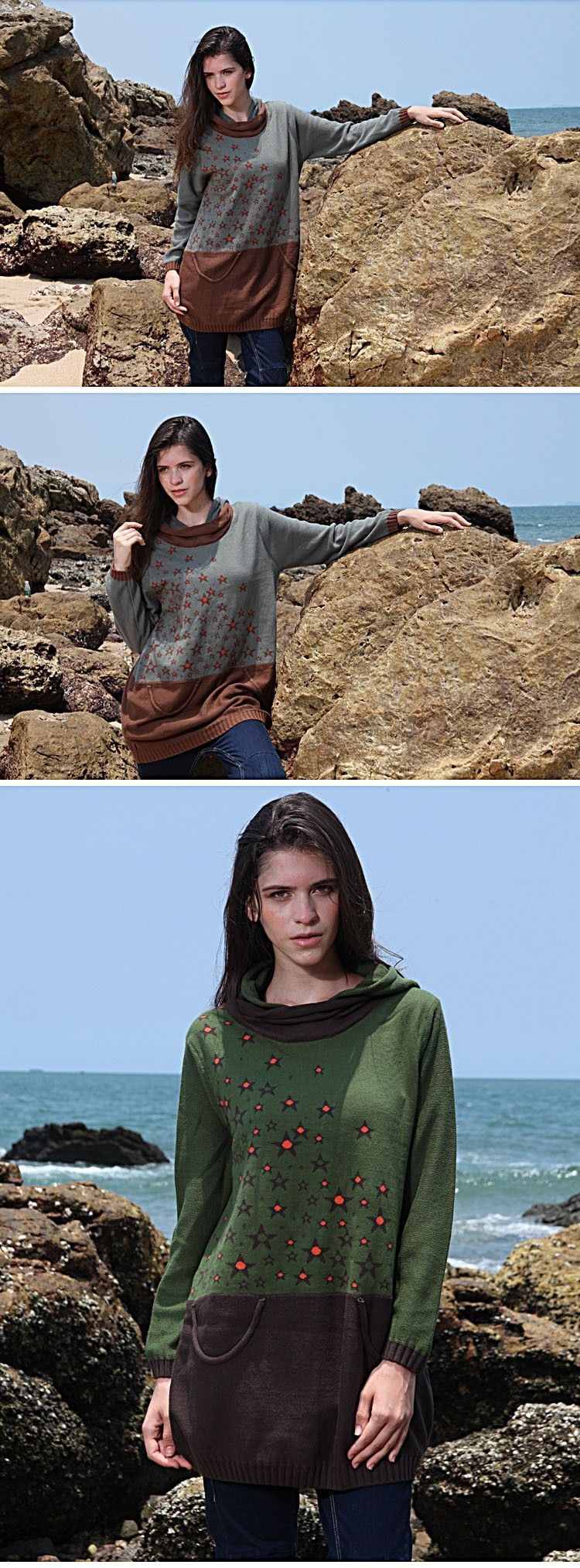 韩国毛衣2013秋冬中长款圆领图案套头毛衣 品牌打底宽松毛衣批发
