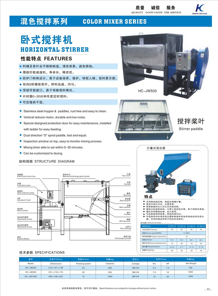 适用于各种塑料原料与色母的混合搅拌,新、旧料及色母混合则效果更佳。