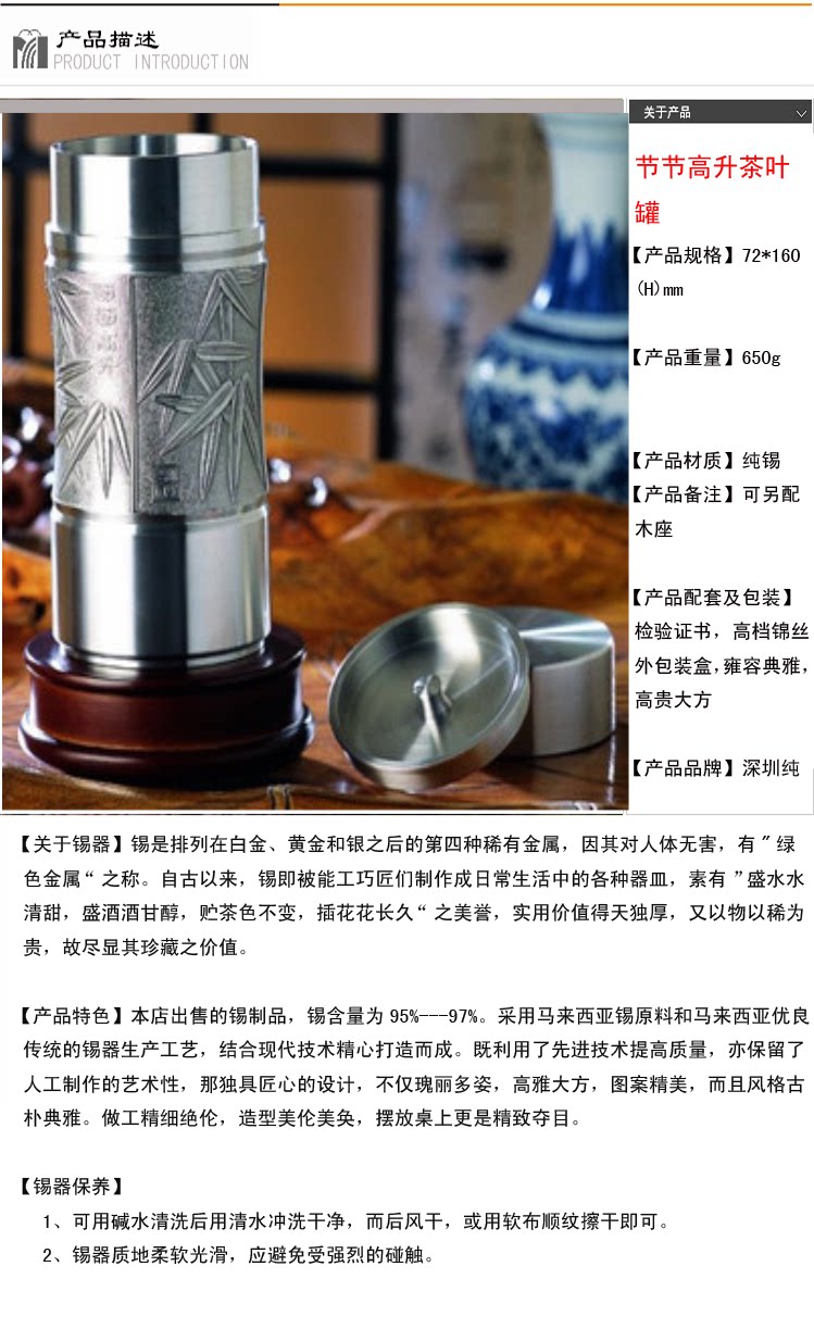 深圳纯锡坊正品 节节高升茶叶罐 纯锡茶具礼品 教师礼品创意新奇