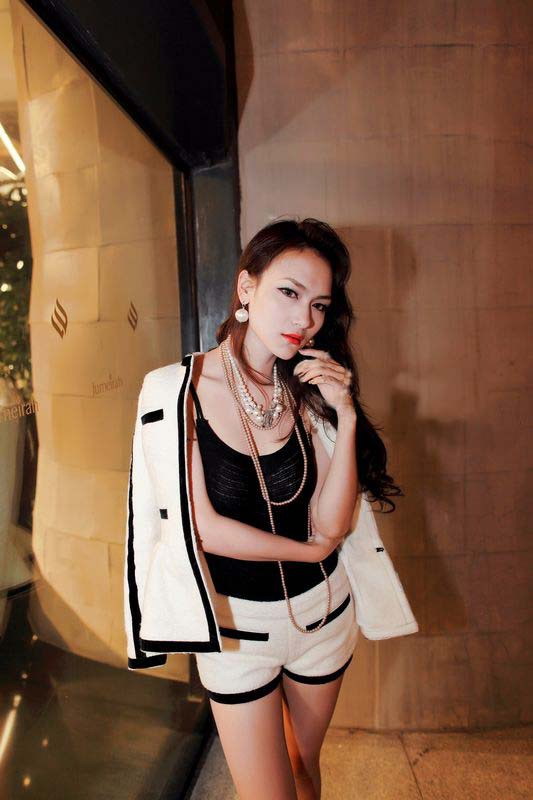 2013秋欧美毛呢套装批发 黑白千鸟格小香风气质上衣+短裤6110