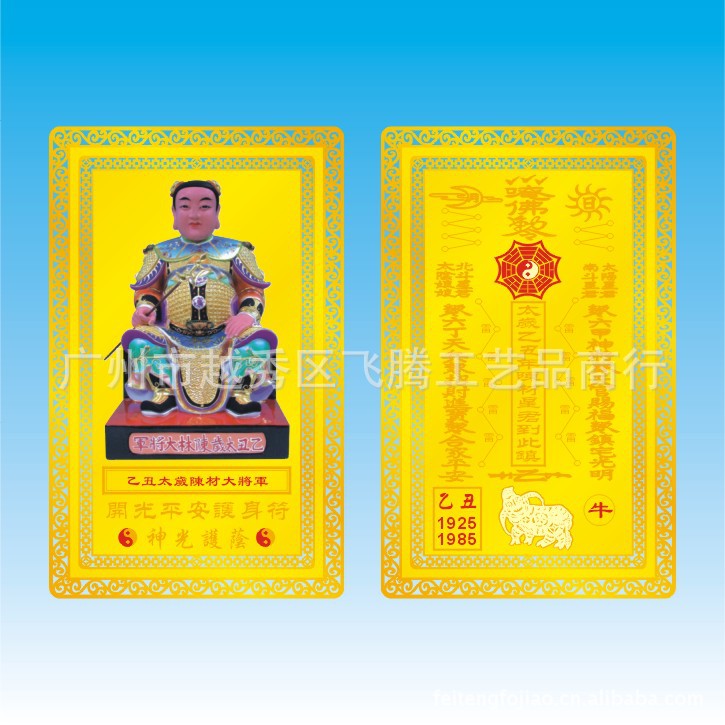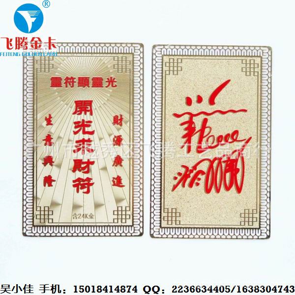 广州市越秀区飞腾工艺品商行是广州市飞腾骏业礼品制造有限公司(简称为“飞腾金卡”)的直属品牌专卖店,飞腾金卡专业制卡及制造铜镀金工艺品的用品直接厂家,我们既可根据客户要求订制,也可供客户当场选购。本公司遵循“创一流产品,走遍全世界”的宏伟目标和“踏实、优质、创新、共赢”的经营理念;集开发、制造、销售为一体,注重品牌发展,并为此建立了完善管理模式和质量保证体系。 主要产品有:用品批发厂家、用品批发直接供应厂家、广州佛家用品批发厂家、用品、用品批发、电动转经轮、手摇转经轮、金经书、太阳能转经轮、香水车座、吉祥车挂、阅经架、工艺品、罗盘、用品批发风水物、道教风水物、转经火轮、吉祥钟表、LED莲花灯、用品批发水晶摆件、亚克力用品批发摆件、亚克力摆件、笔筒、铜板画、密宗唐卡、佛卡护身符、道教开光护身符、毛泽东纪念生肖卡、八大守护神生肖金卡、六十甲子太岁护身符、手机链、圣诞礼品、镂空工艺品、十相自在产品、九宫八卦产品、水晶工艺品、纸镇、有机玻璃工艺品、VIP金卡、银卡、金卡银卡名片、金属书签等。此产品均按专业要求结合各地风俗习惯设计而成,精致、美观、大方,深得佛界各位人士的好评。 欢迎到我司主页http://www.gzft.net浏览我们的产品. 若对我们产品感兴趣,请留言我们免费提供资料!希望我们有机会合作!谢谢! 公司愿景:创一流产品 走遍全世界 公司精神:严谨求实 合作互勉 精益求精 一言九鼎 公司使命:弘扬佛道文化 促进社会和谐 公司价值观:品质是企业的生命 服务是企业的寿命 公司经营理念:诚信 优质 创新 共赢 公司行为文化:微笑 倾听 赞美 感恩 公司员工作风:遵 勤 准 快 公司员工口号:踏实做人 认真做事 |