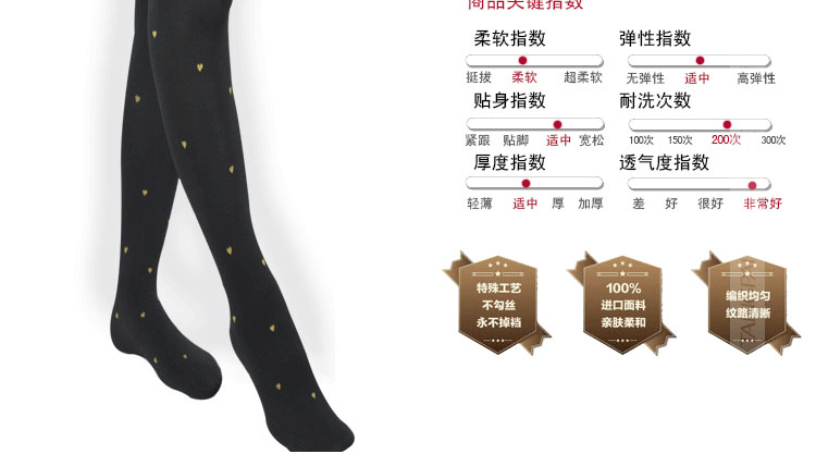 TANGPAI唐派遵循简约、环保、舒适的设计理念,全新推出性感高弹连裤袜,其原料采用比发丝还轻柔的高科技超细纤维全弹性丝织造,质感绵密细致,触感细滑如丝,视觉高雅,耐用耐磨程度高;独特的花型设计,完美体现出您优雅性感的气质!