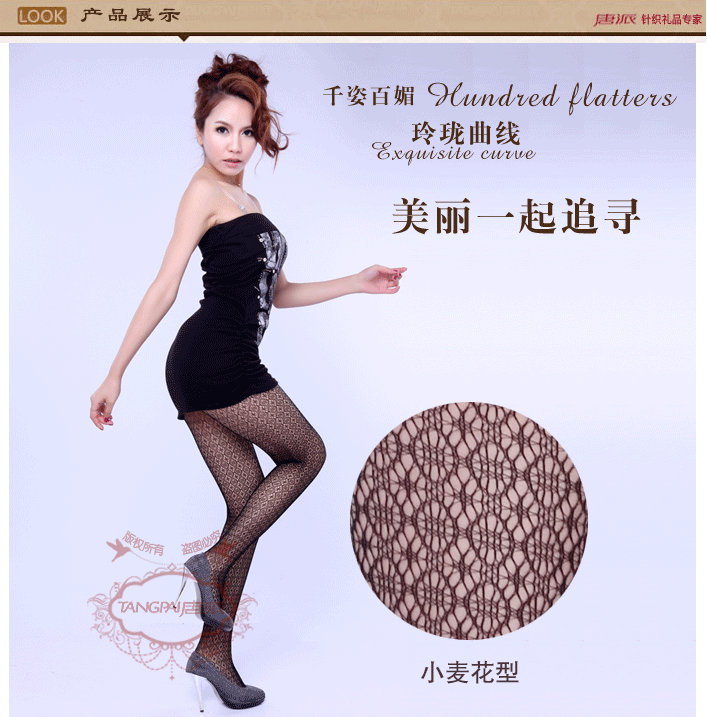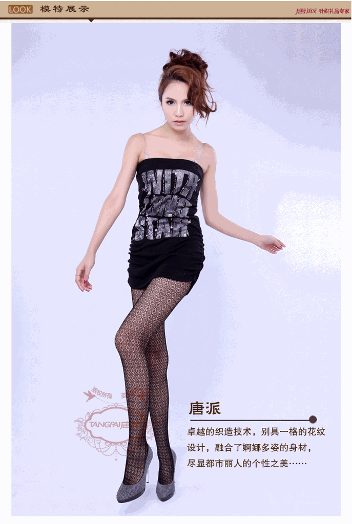 TANGPAI唐派遵循简约、环保、舒适的设计理念,全新推出性感高弹网袜,其原料采用比发丝还轻柔的高科技超细纤维全弹性丝织造,质感绵密细致,触感细滑如丝,视觉高雅,耐用耐磨程度高;独特的花型设计,完美体现出您优雅性感的气质!