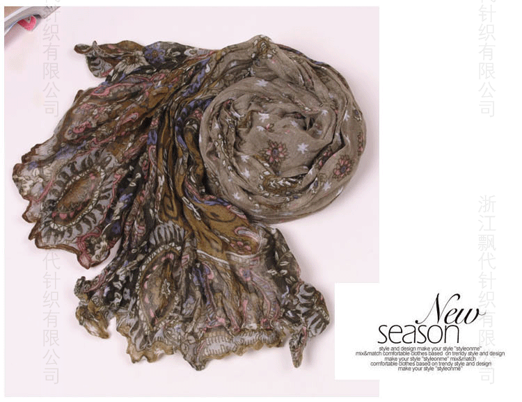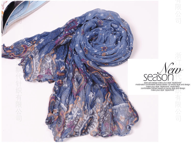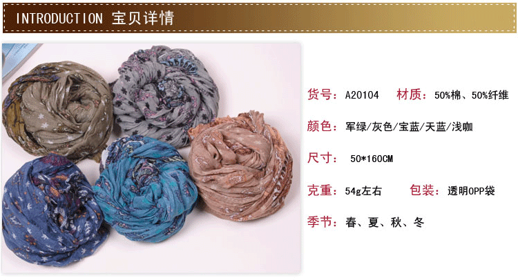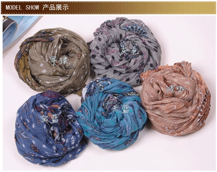 A20104韩国热销款碎花民族风围巾 巴厘纱棉麻女士围巾 丝巾 披肩