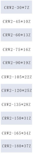 CRW2型号导轨与保持架颗数对照: