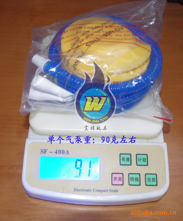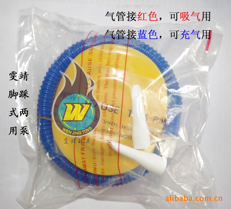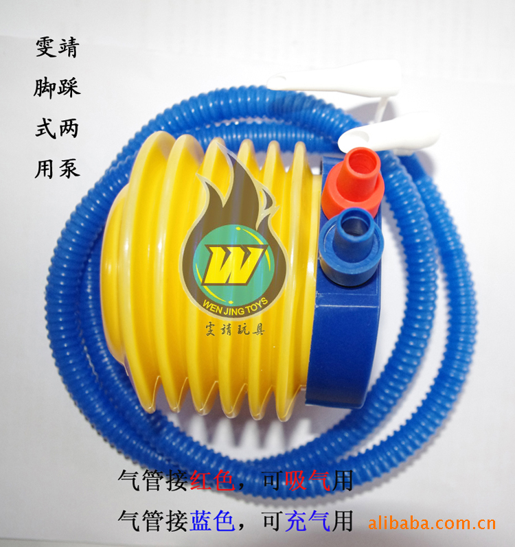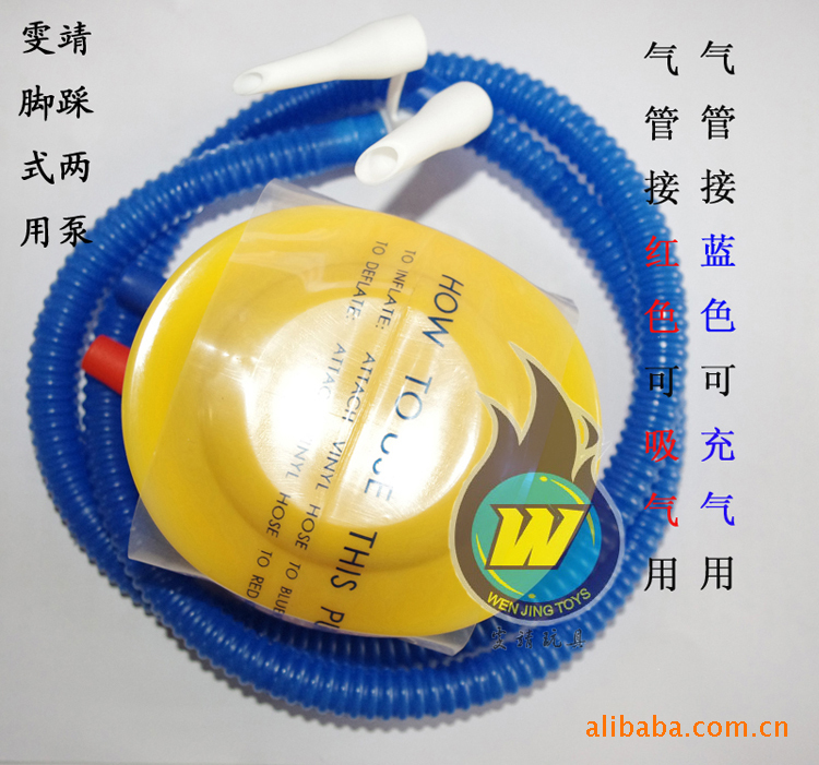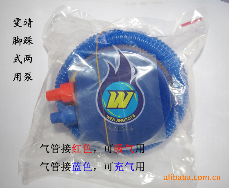 此款销售玩具名称:皮球跳跳马等充气玩具专用脚踩式充气泵(出口台湾)尺寸:4英寸 装箱数:120个 单个净重:90克