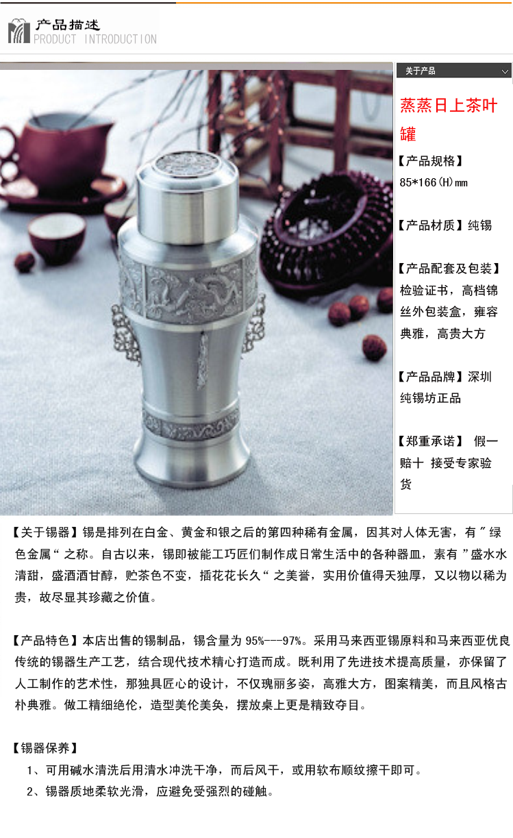 深圳纯锡坊正品 蒸蒸日上茶叶罐 纯锡茶具 高档礼品 激励版茶叶罐