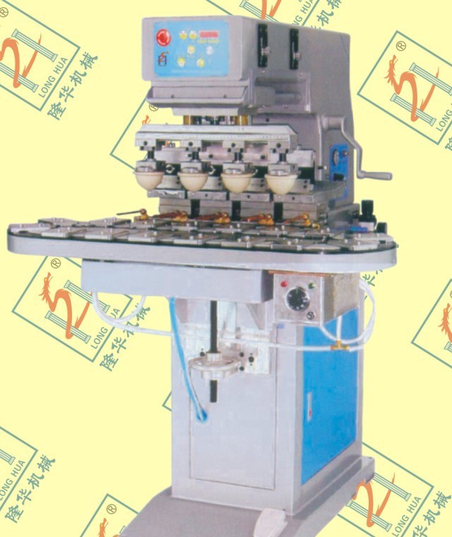 特点: 本机适合印刷较大尺寸的工件,亦是自动套色,每印一次即可完成一个印刷周期,故效率较高,但夹具需要十六个,位置精度要求高。适合产品:电器、杯、文具、玩具、礼品等。