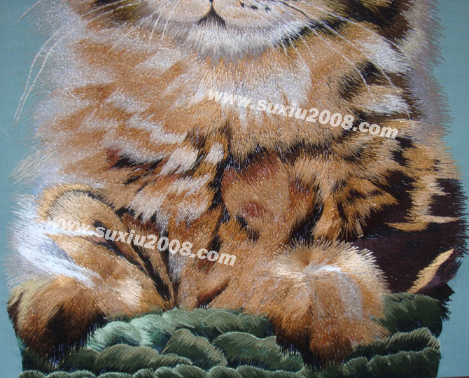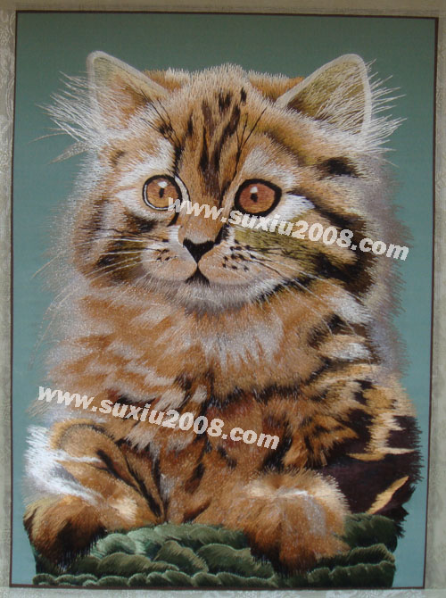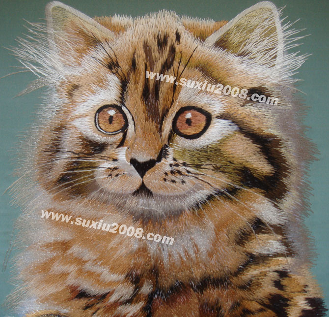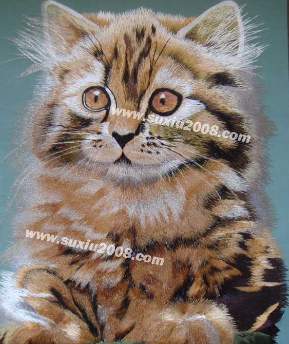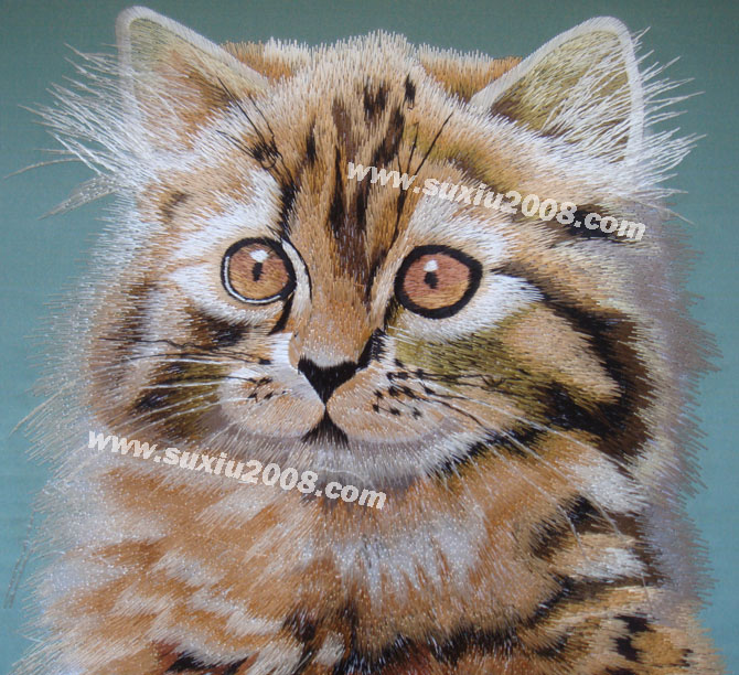 猫:已经被人类驯化了3500年(但未像狗一样完全地被驯化),现在,猫成为了全世界家庭中极为广泛的宠物。 猫的特点是贪睡,任性但爱干净,它的反应和平衡能力屈数一指,胡子是一把心子,会用肢体表达语言,是个狩猎者。 图案为手工蚕丝线仿苏绣,绣工精细,神态逼真,实物拍摄,实物比图片精美。 | | |