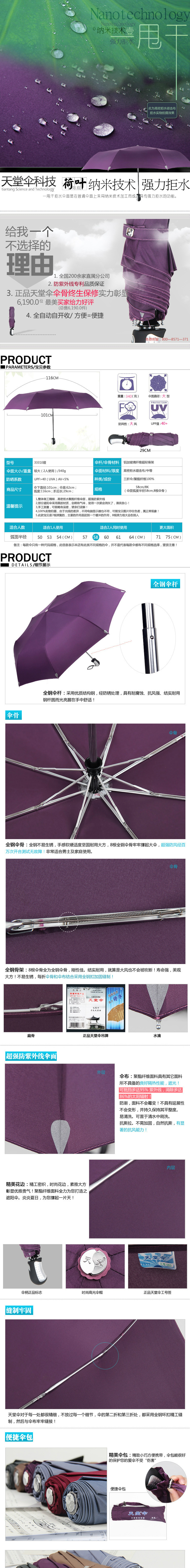 | 【产品信息】 | 高密度拒水碰击布三折超轻自开收伞 |
