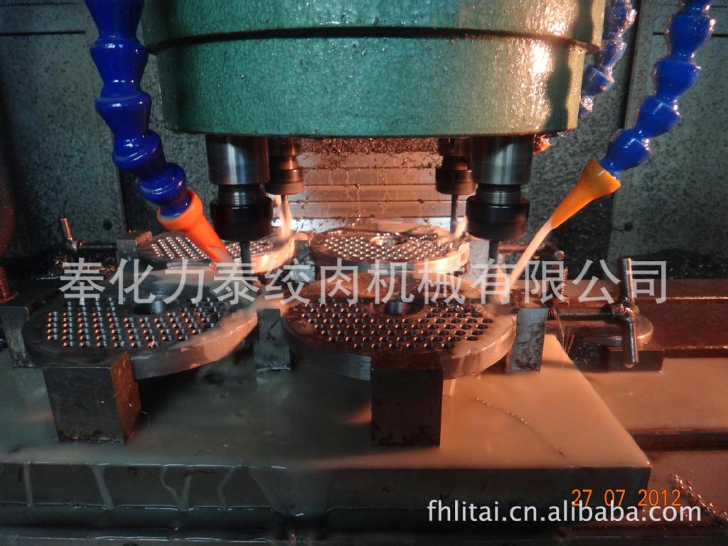 奉化力泰绞肉机械有限公司是宁波佰利企业旗下的一家专业生产和出口高档优质绞肉机械产品的专业性企业,公司有一支非常专业设计,研发生产,销售的团队,并且拥有专业的生产工艺设备(数控锻打机,数控车床,数控钻床,抛光机,打磨机等),对产品的数量及质量奠定了一个非常好的基础。主营产品有绞肉机和绞肉机配件(绞肉刀、绞肉盘、网孔板等)。产品远销欧美及中东地区,受到了广大客户的一致好评。 产品型号有#5,#7,#8,#10,#12,#22,#32,#42,#52,#56。盘的出肉孔径从2mm-32.5mm, 盘的厚度从4mm-25mm不等,分有吉无吉,生产的刀和盘材料有不锈耐酸钢, 合金工具钢, 普通钢。公司生产的刀和盘最大特点: 外表美观光滑, 刀口锋利, 硬度均匀。 特别是刀和盘在工作状态时噪音极低, 在该行业里是中国的佼佼者。