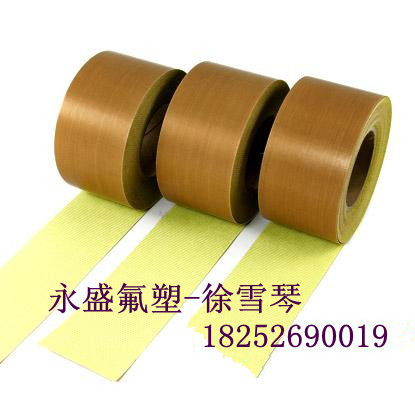 有着良好的抗粘性,耐化学腐蚀和耐高温性以及优秀的绝缘性能,广泛应用于包装、热塑、复合、封口热合、电子电气等行业,凡需要防粘热合耐腐蚀绝缘等部位都可粘贴,并具有反复粘贴功能。经过织物加强的特氟龙胶布更具用强度高的特点,可应用于浆纱机的滚筒、热塑脱模等行业,可反复使用、易于更换。可直接贴于各种大平面及规则曲面(如滚筒)上,操作简单。免去喷涂四氟材料需专业设备、特殊工艺及必须运输到专业喷涂厂加工等限制。 铁氟龙粘胶带主要特长 耐温性能好(连续使用温度-70至260℃),即使在过热的加热器上也能够安全使用。 抗粘性好,熔化的包装薄膜的“渣屑”不会粘到加热器上。 电绝缘性极佳。 走行稳定性好,耐久性好,容易维修。 铁氟龙粘胶带应用范围 用于包装食品、乳制品、药品的热密封压粘部位 塑料薄膜的热密封使用 用于包装染色、树脂加工用精压辊子的表面 用于包装粘合物、贴合物涂覆机的辊子表面 用于包封加料斗、导轨的摩擦面 用于包封非粘性以及需要保持平滑性的部分 作为绝缘衬垫、绝缘部位的绝缘包封以及其它 铁氟龙粘胶带性能特点 应用本产品可以省去在烘筒表面喷涂聚四氟乙烯防粘涂层的繁杂工序,同样起到防粘的作用 极大的减轻劳动强度,也有利于设备的保护。停机时间短,综合费用低,经济效益高铁氟龙粘胶带的常规规格及技术参数:标准宽度为1M或1.25M ,可以进行小规格高精度分切。特氟龙玻璃纤维胶带的厚度为0.13~0.40MM、纯特氟胶带的厚度为0.08~0.5MM都可以生产。颜色一般为棕色和黑色,其他颜色也可做。 本产品耐高温260℃,胶带表面特氟龙材质(即聚四氟乙烯)防粘性好、光滑耐磨。背面硅胶耐高温、粘贴牢固不会剥落。使用寿命长 使用方便,不需要拆卸和搬运烘筒,现场粘贴防粘胶带到烘筒的表面即可正常开机使用。 a.织物加强型的铁氟龙玻璃纤维胶带系列款号 厚度 最大宽幅 粘附强度(对钢) 抗拉强度 耐温 F008 0.08mm 1200mm