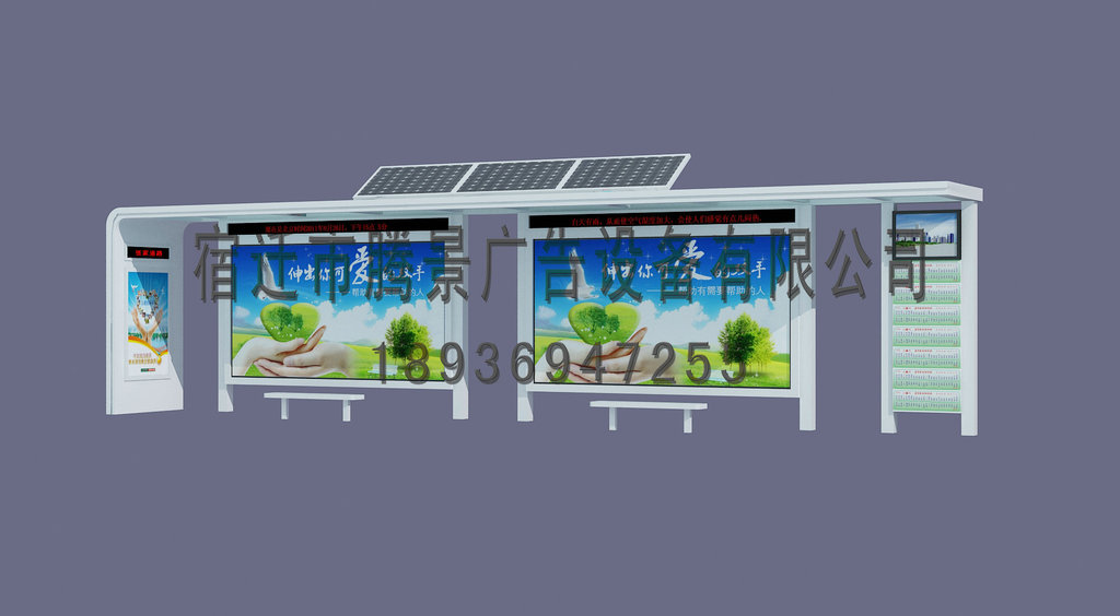 宿迁腾景广告设备有限公司主营产品太阳能灯箱、太阳能候车亭、太阳能广告垃圾箱、太阳能阅报栏、太阳能滚动灯箱、智能电子站牌、高端阅报栏、电子读报栏、指路牌、LED灯箱、灭蚊灯箱、LCD广告机、社区灯箱、银行ATM机、不锈钢灯箱、户外大型灯箱、公交站台、消防栏、景观灯箱等各类灯箱。产品上百种,亦可根据客户的需求加工制作各种型号、规格的产品,
